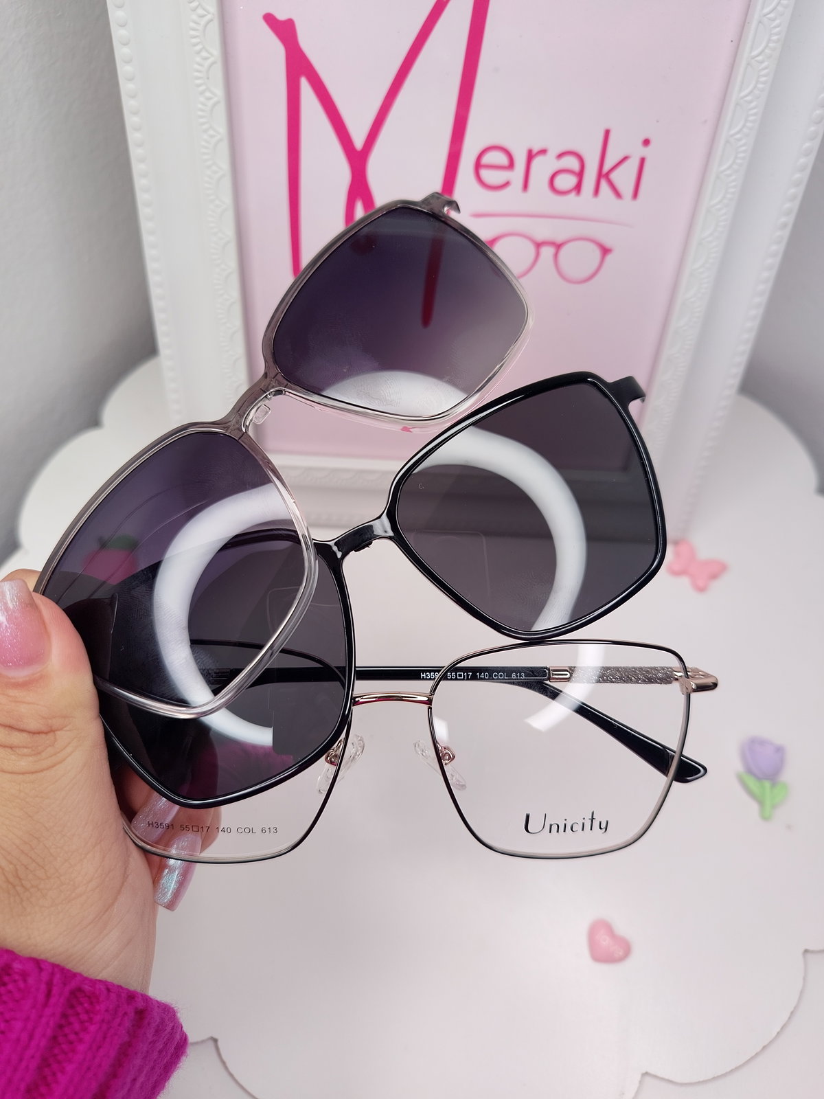 Armazón Clip on doble placa Roma - Negro