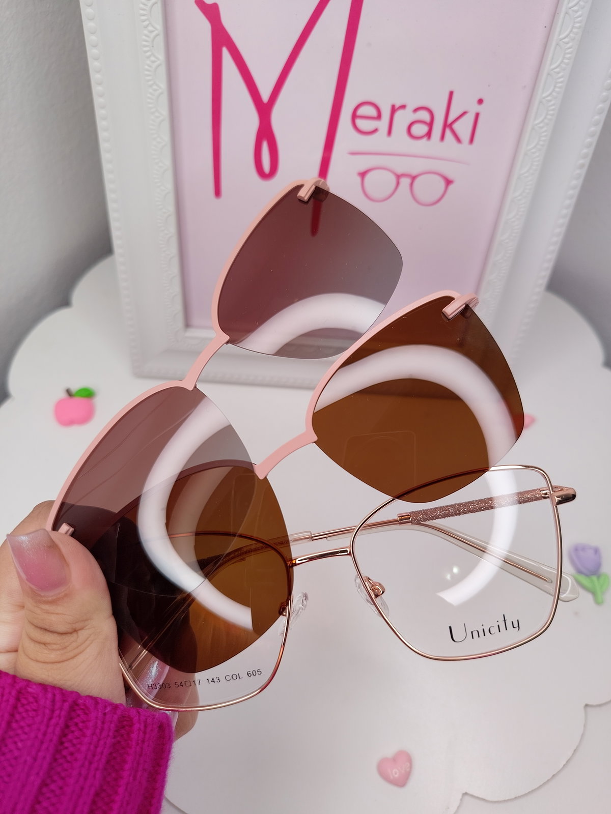 Clip on doble placa Sunset con glitter - Rosa
